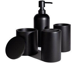 4 pieces bathroom accessories set ceramic housewares marble bathroom accessories, includes soap dish, soap dispenser pump, tumbler, toothbrush holder (matte black (four piece)) by everly quinn. Towel bar, paper holder and towel ring in matte. Rated 4.5 out of 5 stars. Shop this collection (94) best seller. Keep ingredients organized in kitchen storage canisters.